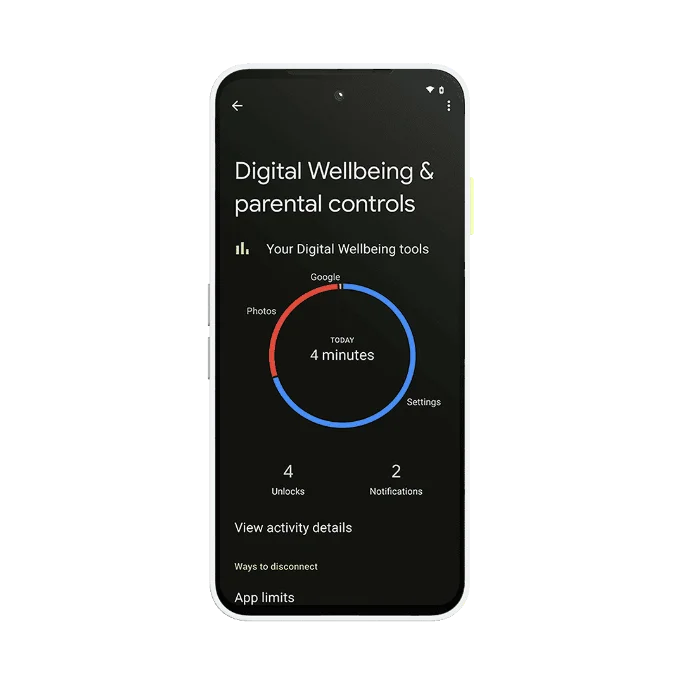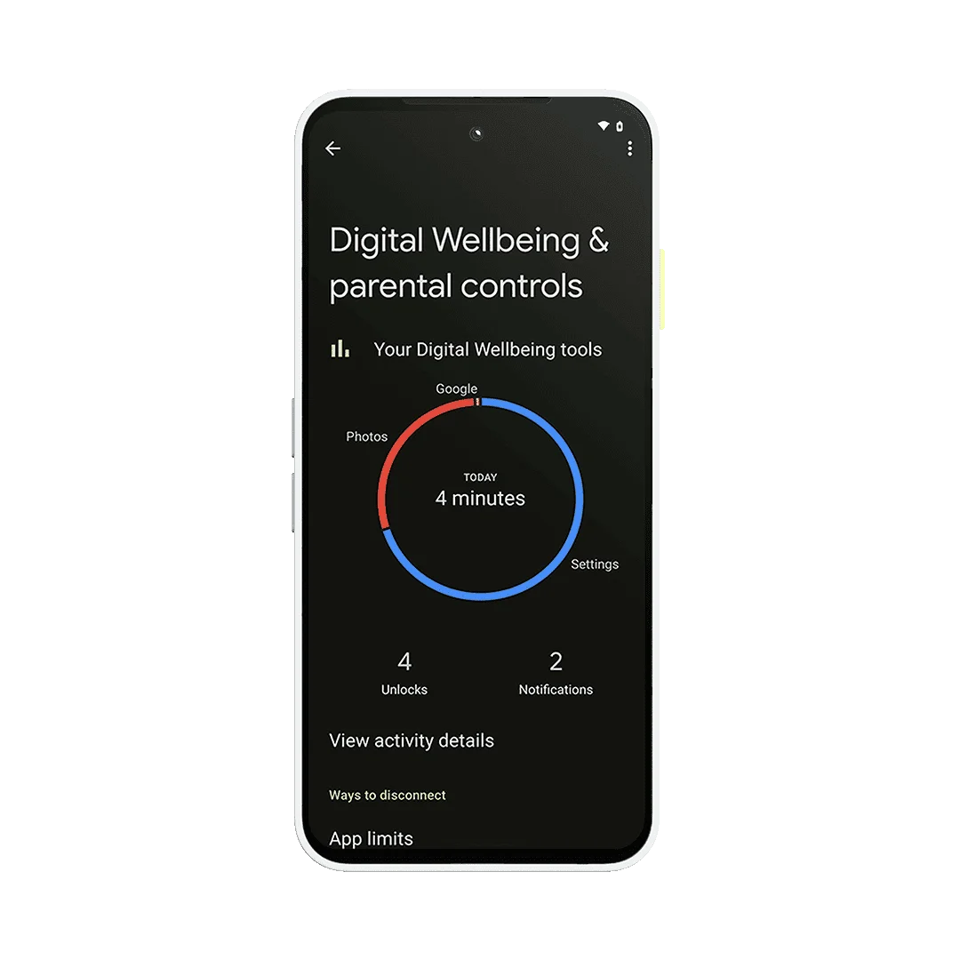 If you’re concerned that you’re spending too much time on your phone, you’ll love the Digital Wellbeing corner in your Fairphone. Parked in your settings, it gives you a clear overview of your phone behavior on a daily and weekly basis. You get to see all sorts of data from how much time your display has been on, to what apps you have been using the most, to how many times you’ve unlocked your device. Here, you can also set app timers if you’d like, switch on bedtime mode, or experiment with focus modes.
