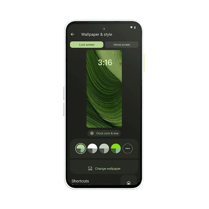 If you want to customize your home and lock screens, press and hold on an empty space. This will bring up a pop-up menu which you can to use to add widgets, change the wallpaper, and tweak home settings. Changing the wallpaper will also adjust the color palette of your device to match it. You can also customize the exact colors if you’d like, as well as the fonts, font sizes, and grid layouts. There are even more options available in your settings. For example, try toggling Dark Mode, which will flip your colors to darker backgrounds and hues. Some people find this easier on the eyes.