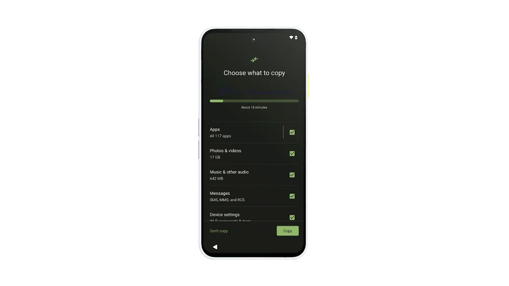 - To copy apps & data, tap Next.