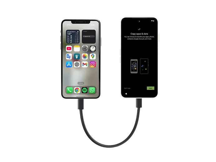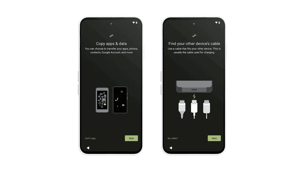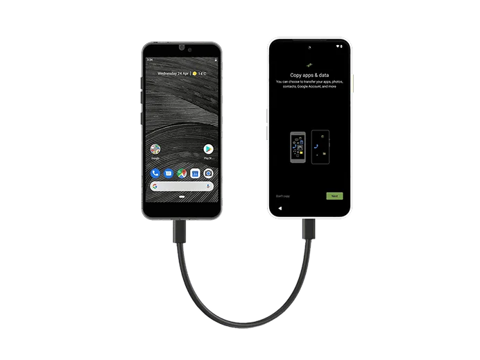 - To copy apps & data, tap Next until you're asked to find a cable.