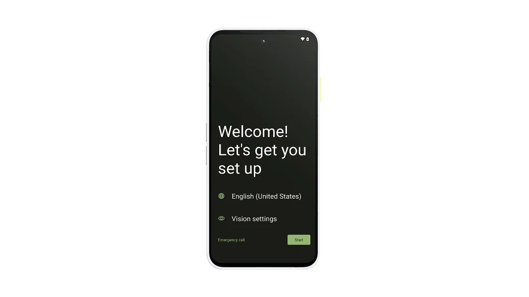 - Turn on your new Fairphone and tap Start.
