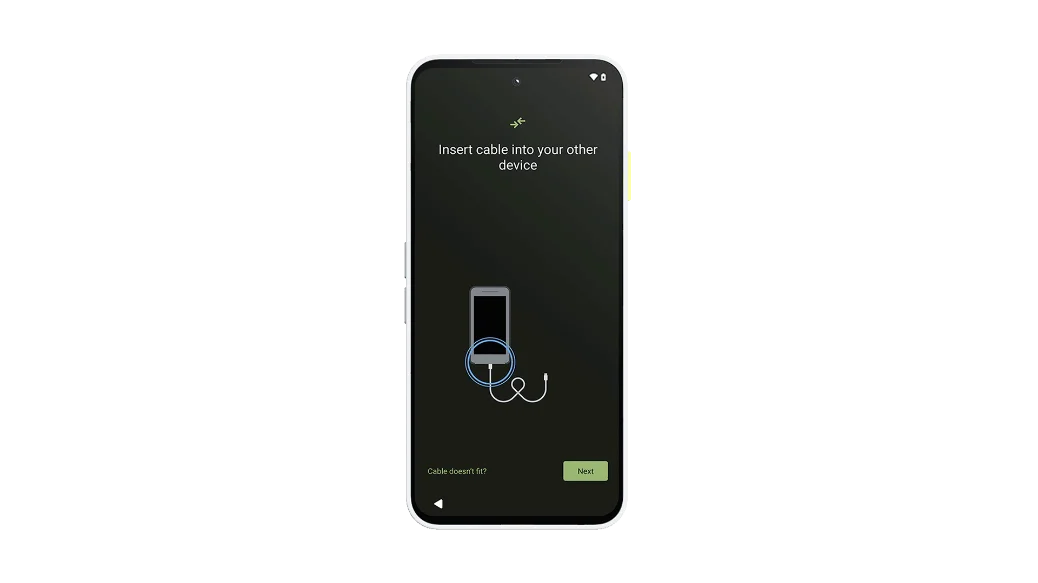 - Insert the cable into your old device, then tap Next.