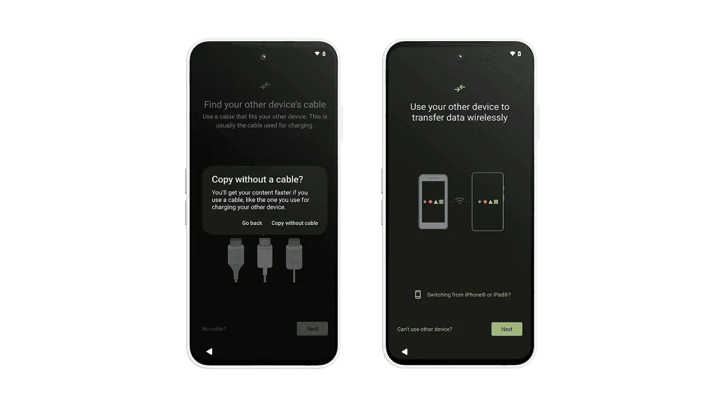 - Tap No cable → Copy without cable → Next.