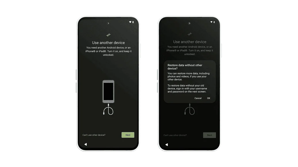 - Tap Can't use old device → OK.