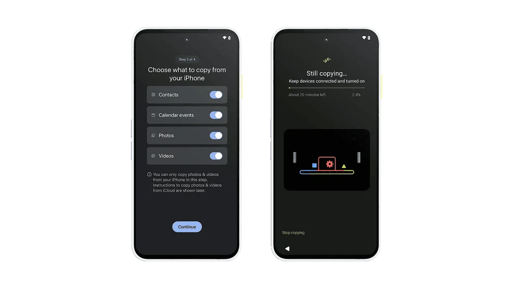 - Transfer your contacts, photos and more from any phone