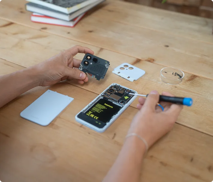 Learn how to confidently fix issues with your Fairphone device right at home, or opt to send it in to our service centers.
