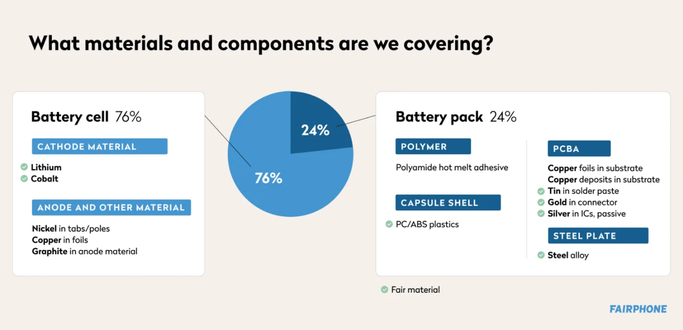 Despite the complexity of battery composition, we made nearly one-third of the battery weight “fair”, meaning almost a third of the materials came from fairer sources, or created positive impacts for miners and their communities. This also had to be done without compromising on the battery’s capacity (4200mAh), charging speed or overall longevity.