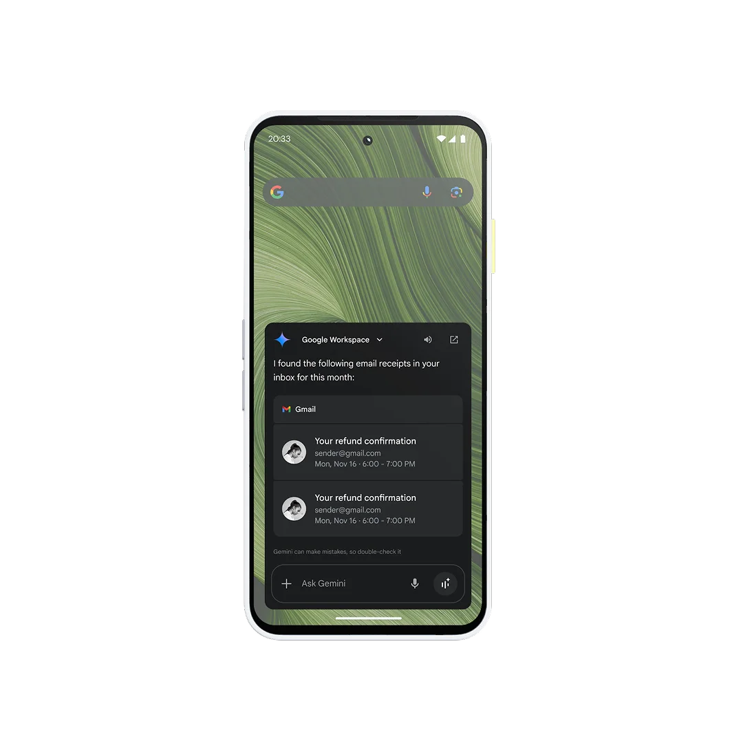 Chat to start writing, planning, learning, and more. Go beyond with Gemini Live, and ask questions about what’s on your phone screen and what’s in front of you.