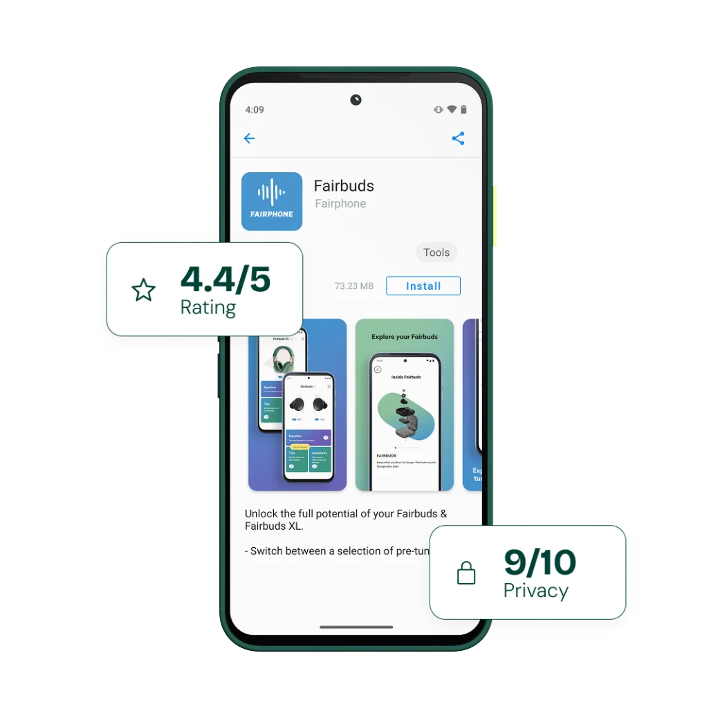 - 4415 mAh lithium-ion battery: smaller, yet more powerful than the Fairphone 5